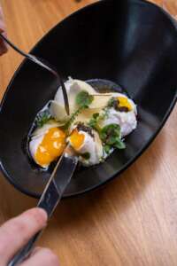 pošírovaná vejce · lanýžové máslo · parmezán· chléb